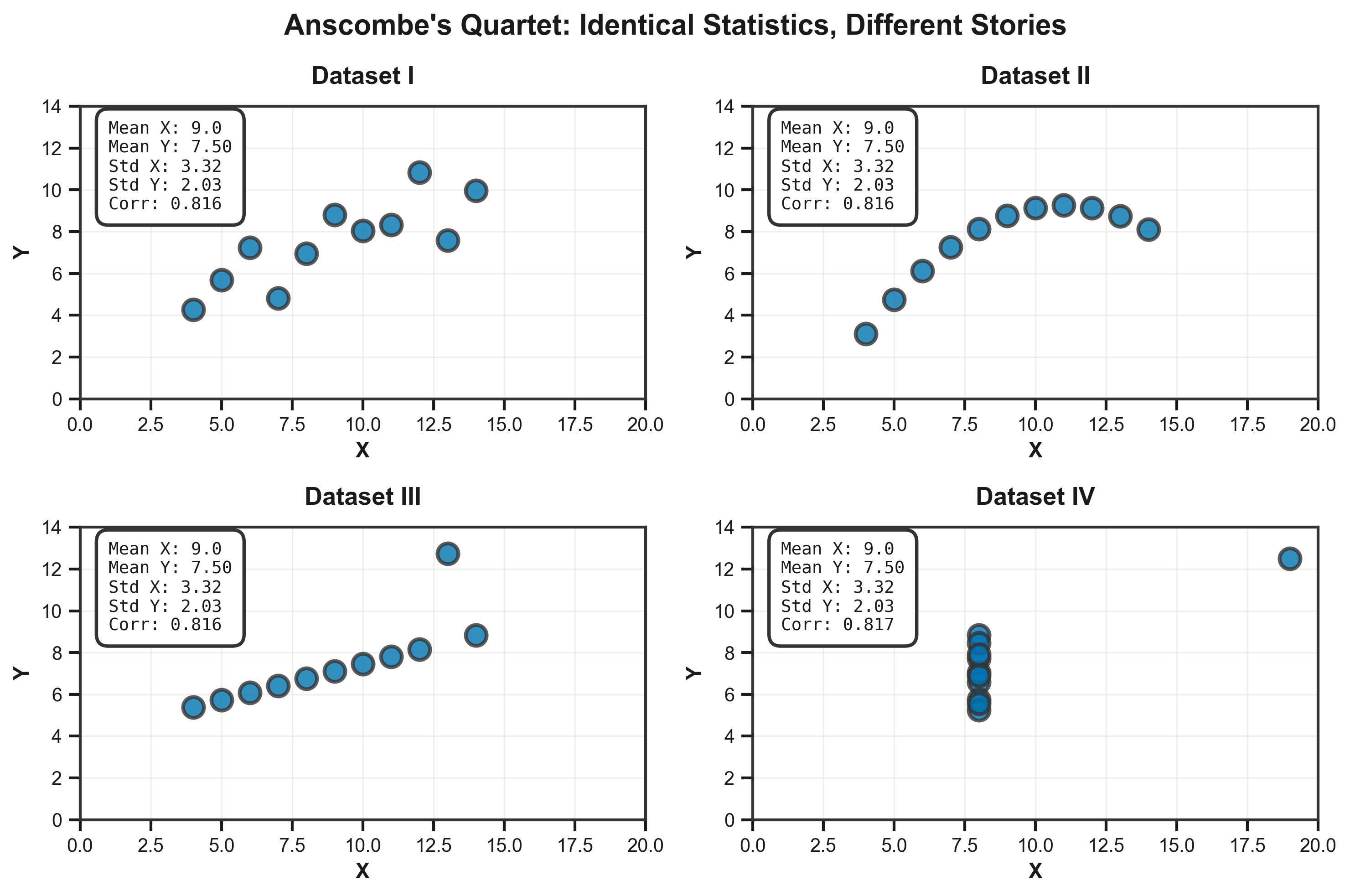 Why Visualize? To tell a story and understand trends (identical statistics ≠ identical patterns)