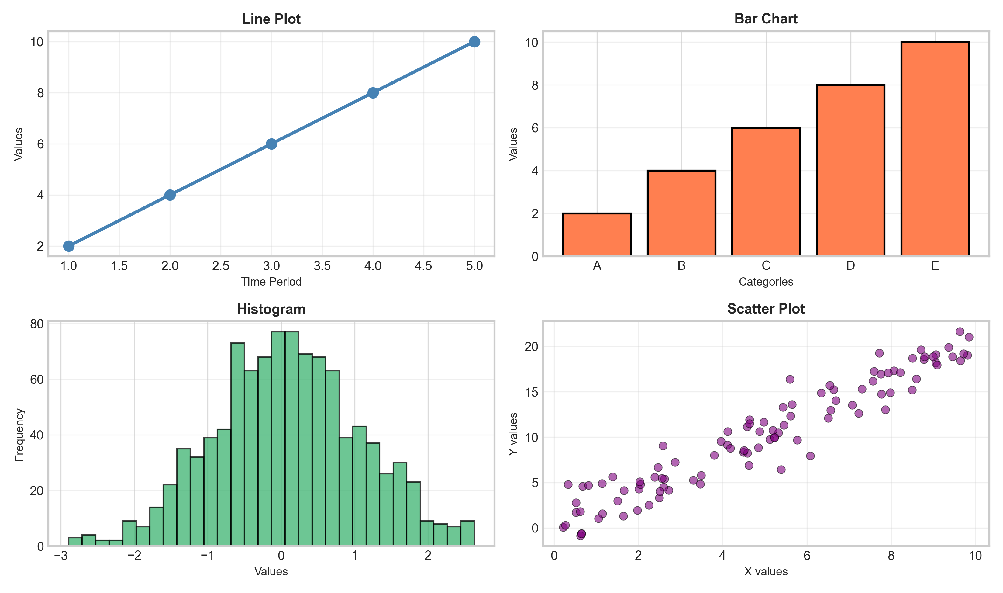 scatterplot() → Supports hue= and size= for 3rd/4th dimensions